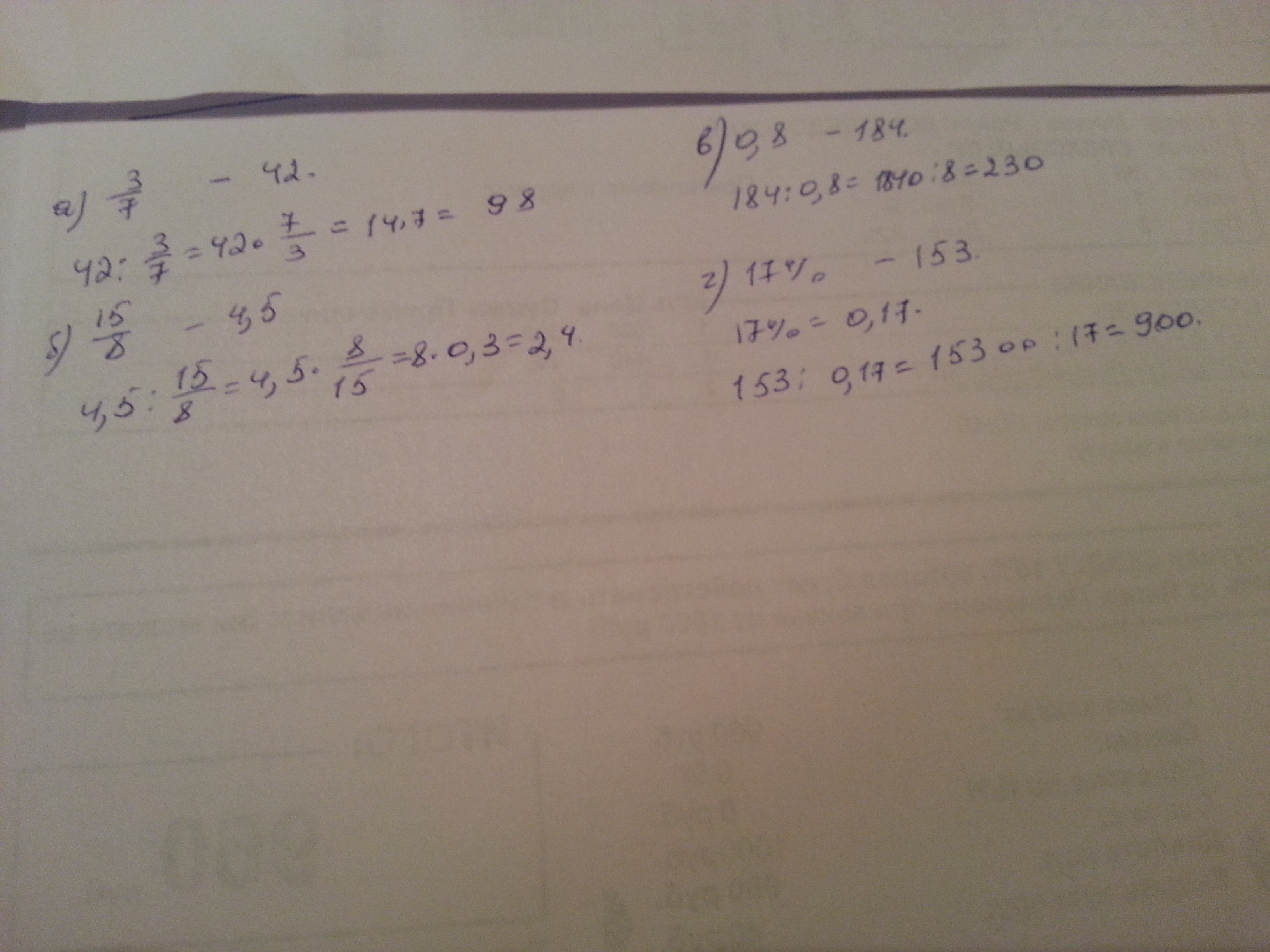 найдите число если а) 37 числа равны 42 б)158 числа равны 4,5 в) 0.8 числа равны 184 г) 17% числа равны 153