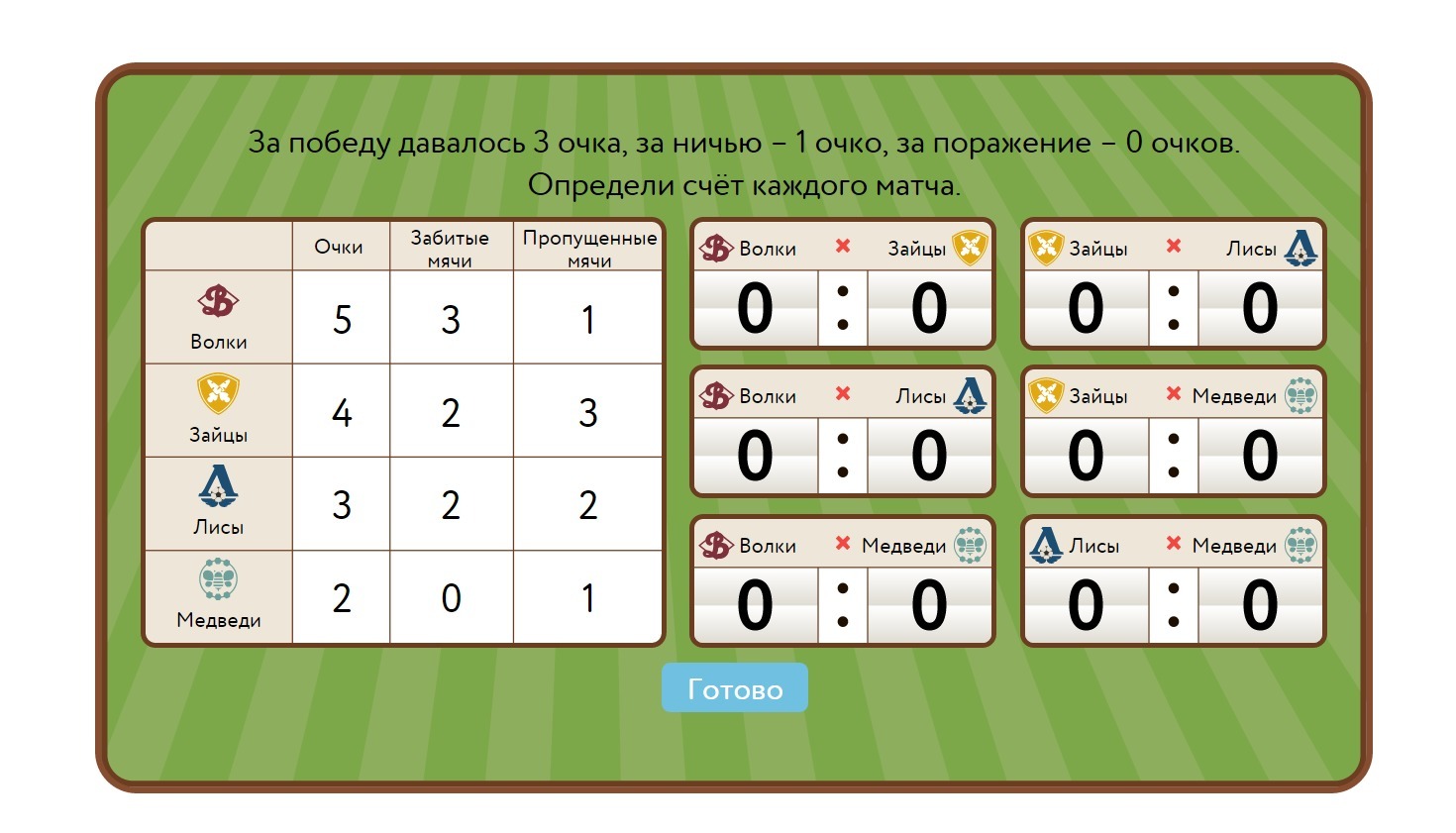 волки 8 зайцы 6 , лисы 5 , медведи 2
