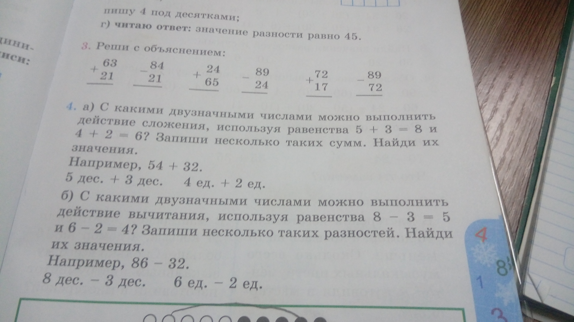 2)84-21= 63