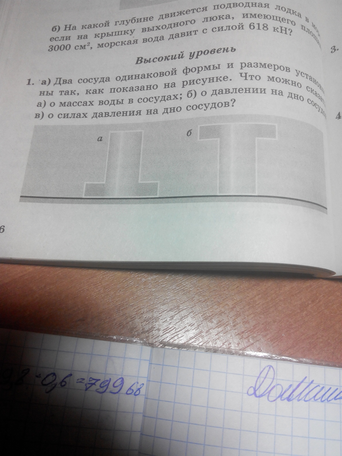 два сосуда одинаковой формы и размеров установлены так, как показано на рисунке. Что можно сказать: