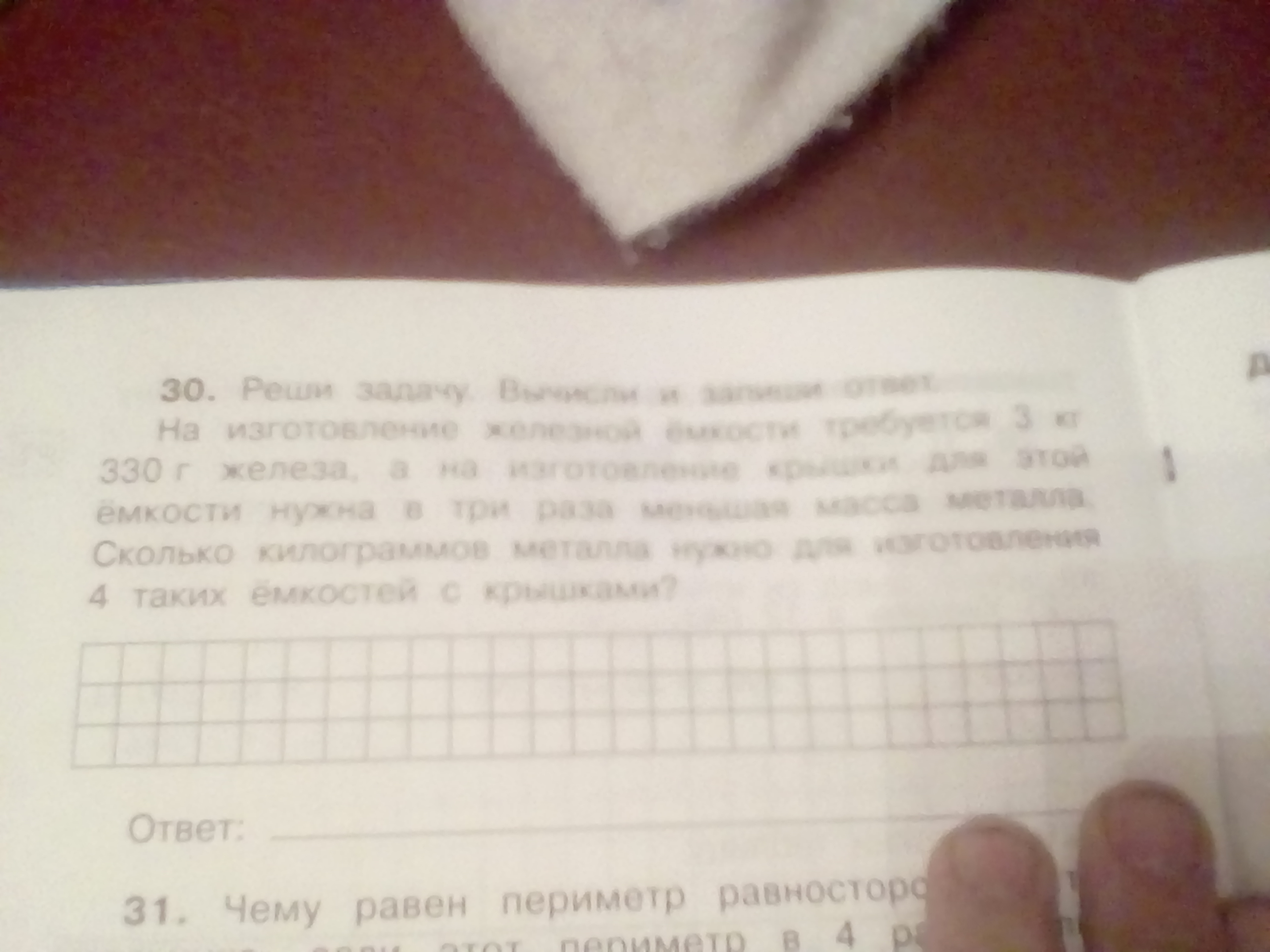 на изготовление железной емкости требуется 3 килограмма 330 граммов железа а на изготовление крышки для этой емкости нужно три раза меньше массы металла Сколько килограммов металла нужно для изготовления 4 таких емкости с крышками