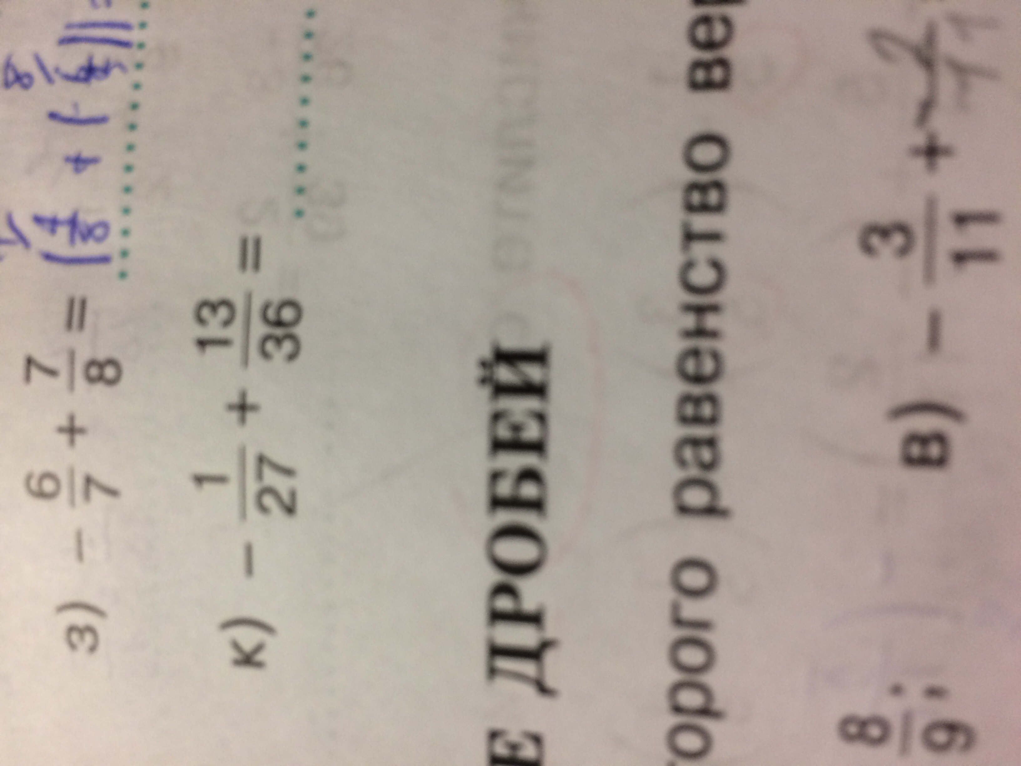 ![- frac{1}{27} + frac{13}{36} =<br />Ищем дополнительные множители(нужно найти те числа на которое можно поделить знаменатели (27 и 36))<br />[tex] frac{39}{108} - ( -frac{4}{108}) = frac{39-4}{108} = frac{35}{108} - frac{1}{27} + frac{13}{36} =<br />Ищем дополнительные множители(нужно найти те числа на которое можно поделить знаменатели (27 и 36))<br />[tex] frac{39}{108} - ( -frac{4}{108}) = frac{39-4}{108} = frac{35}{108}](https://tex.z-dn.net/?f=-+frac%7B1%7D%7B27%7D+%2B++frac%7B13%7D%7B36%7D+%3D%26lt%3Bbr+%2F%26gt%3B%D0%98%D1%89%D0%B5%D0%BC+%D0%B4%D0%BE%D0%BF%D0%BE%D0%BB%D0%BD%D0%B8%D1%82%D0%B5%D0%BB%D1%8C%D0%BD%D1%8B%D0%B5+%D0%BC%D0%BD%D0%BE%D0%B6%D0%B8%D1%82%D0%B5%D0%BB%D0%B8%28%D0%BD%D1%83%D0%B6%D0%BD%D0%BE+%D0%BD%D0%B0%D0%B9%D1%82%D0%B8+%D1%82%D0%B5+%D1%87%D0%B8%D1%81%D0%BB%D0%B0+%D0%BD%D0%B0+%D0%BA%D0%BE%D1%82%D0%BE%D1%80%D0%BE%D0%B5+%D0%BC%D0%BE%D0%B6%D0%BD%D0%BE+%D0%BF%D0%BE%D0%B4%D0%B5%D0%BB%D0%B8%D1%82%D1%8C+%D0%B7%D0%BD%D0%B0%D0%BC%D0%B5%D0%BD%D0%B0%D1%82%D0%B5%D0%BB%D0%B8+%2827+%D0%B8+36%29%29%26lt%3Bbr+%2F%26gt%3B%5Btex%5D+frac%7B39%7D%7B108%7D+-+%28+-frac%7B4%7D%7B108%7D%29+%3D++frac%7B39-4%7D%7B108%7D+%3D++frac%7B35%7D%7B108%7D+)
