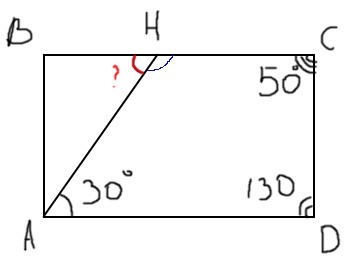 Для начала найдем угол AHC. AHC=360-(30+130+50)=150