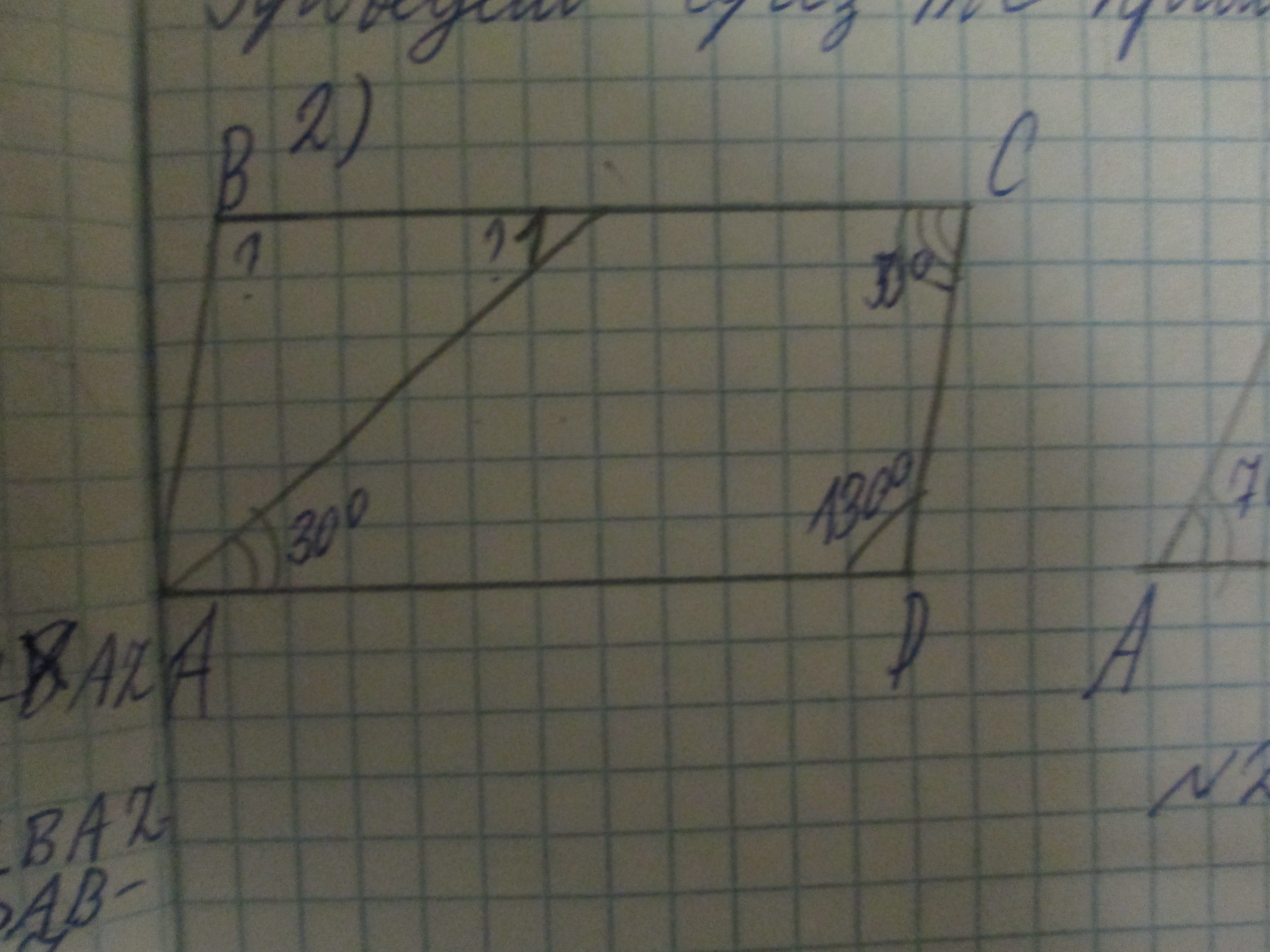 Угол С равен 50 градусов. Угол Д равен 130 градусов. Угол 1 равен 30 градусов. Найти угол 1 и Б