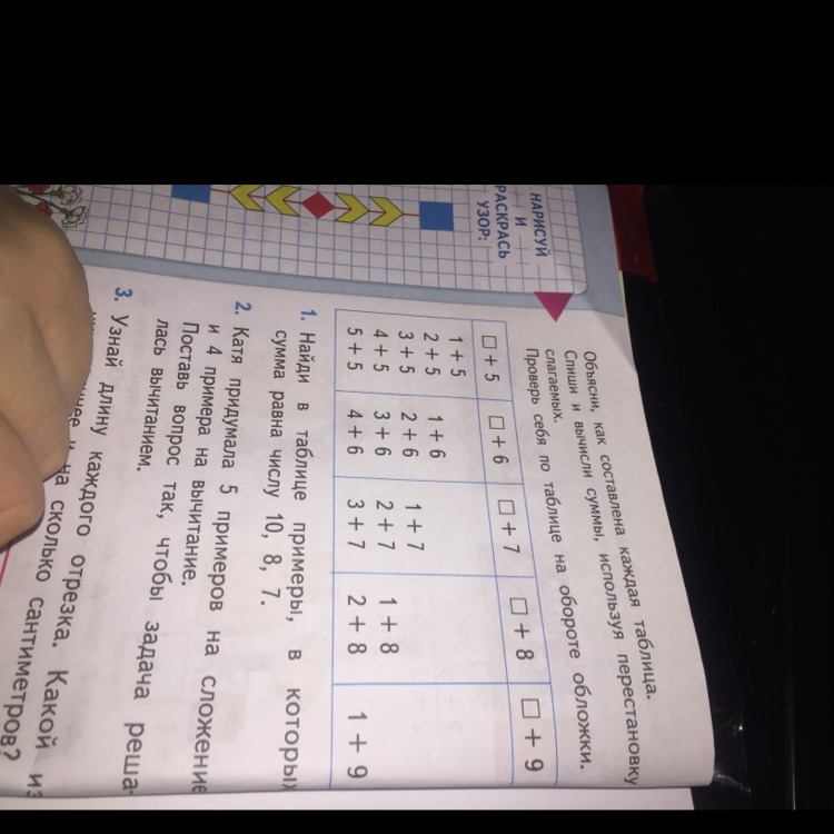 к каждому второму слагаемому прибавляется первое слагаемое, так чтоб сумма равнялась в пределе десяти (не больше 10). Вроде так.