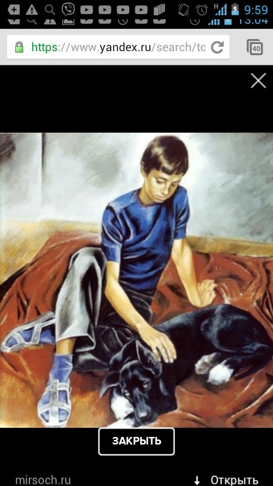 Собака черного окраса, только кончики лап белые. Одно ухо у нее прижато к голове, другое приподнято, как будто она хочет вникнуть в проблему хозяина. Она тоже грустит, наверное, потому что грустит ее хозяин.