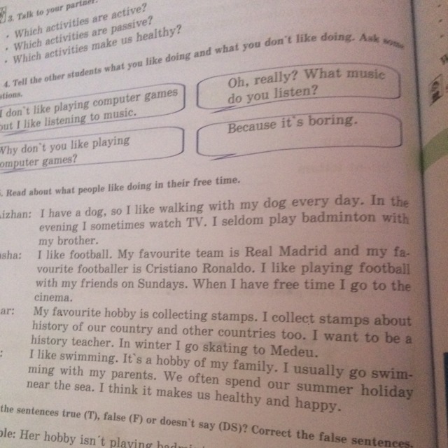 У меня есть собака я люблю гулять со своей собакой каждый день.Вечером я иногда смотрю телик.Я редко играю в бадминтон со своим братом.Мне нравится футбол.Моя любимая команда Мадрид и мой любимый футболист Рональдо.Я люблю играть в футбол с моими друзьями по субботам.Когда у меня есть свободное время я хожу в кино