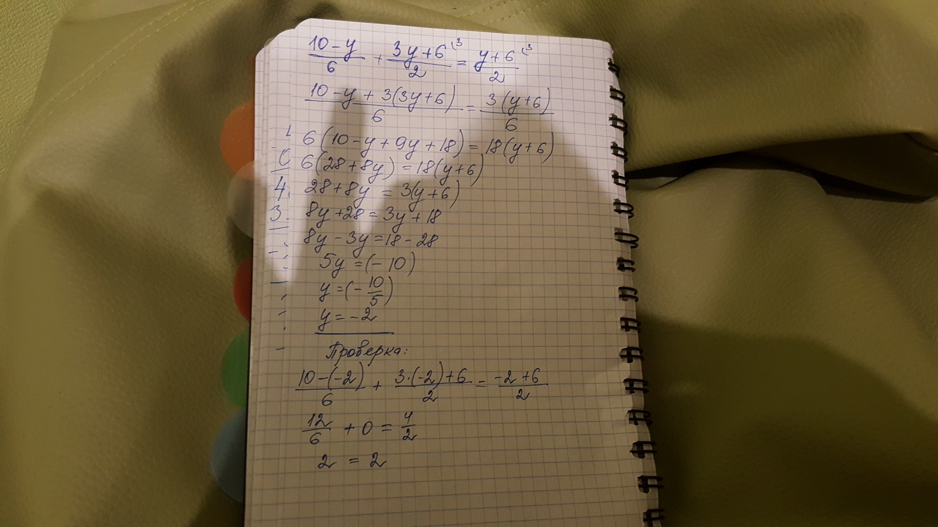 (10-у)/6+(3у+6)/2=(у+6)/2 (умножим на 6)