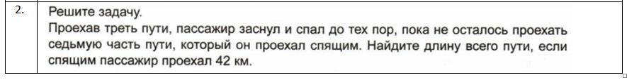 3) 2/3-2/21=(14-2)/21=12/21 (пути) - составили 42 км