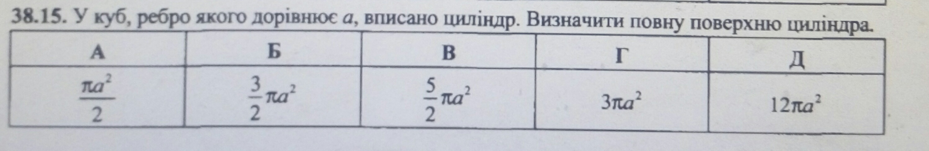 2. сторон куба = высоте цилиндра, H=a