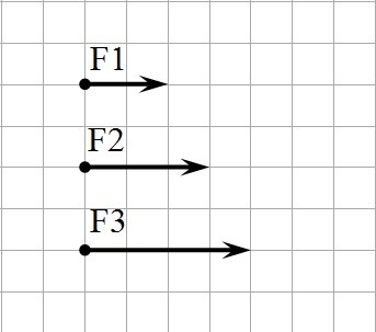 0,5 см х 0,5 см, при данном масштабе сила 10Н займет 2 клетки, 15Н - 3 клетки, 20Н - 4 клетки.