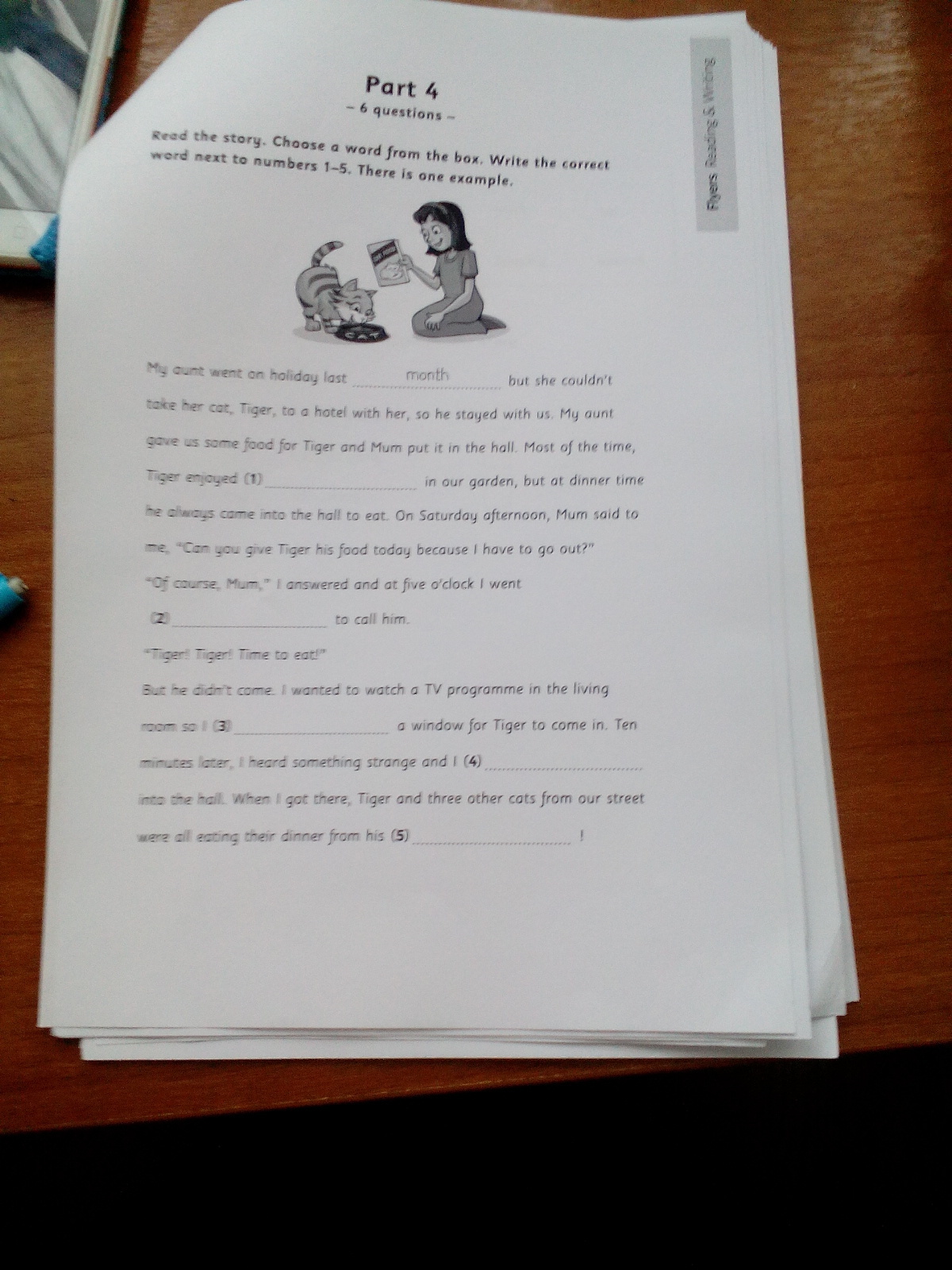 переведите текст и вставте слова :sleep,outside,torch,ran,ready,closed,bowl,sleeping,opened