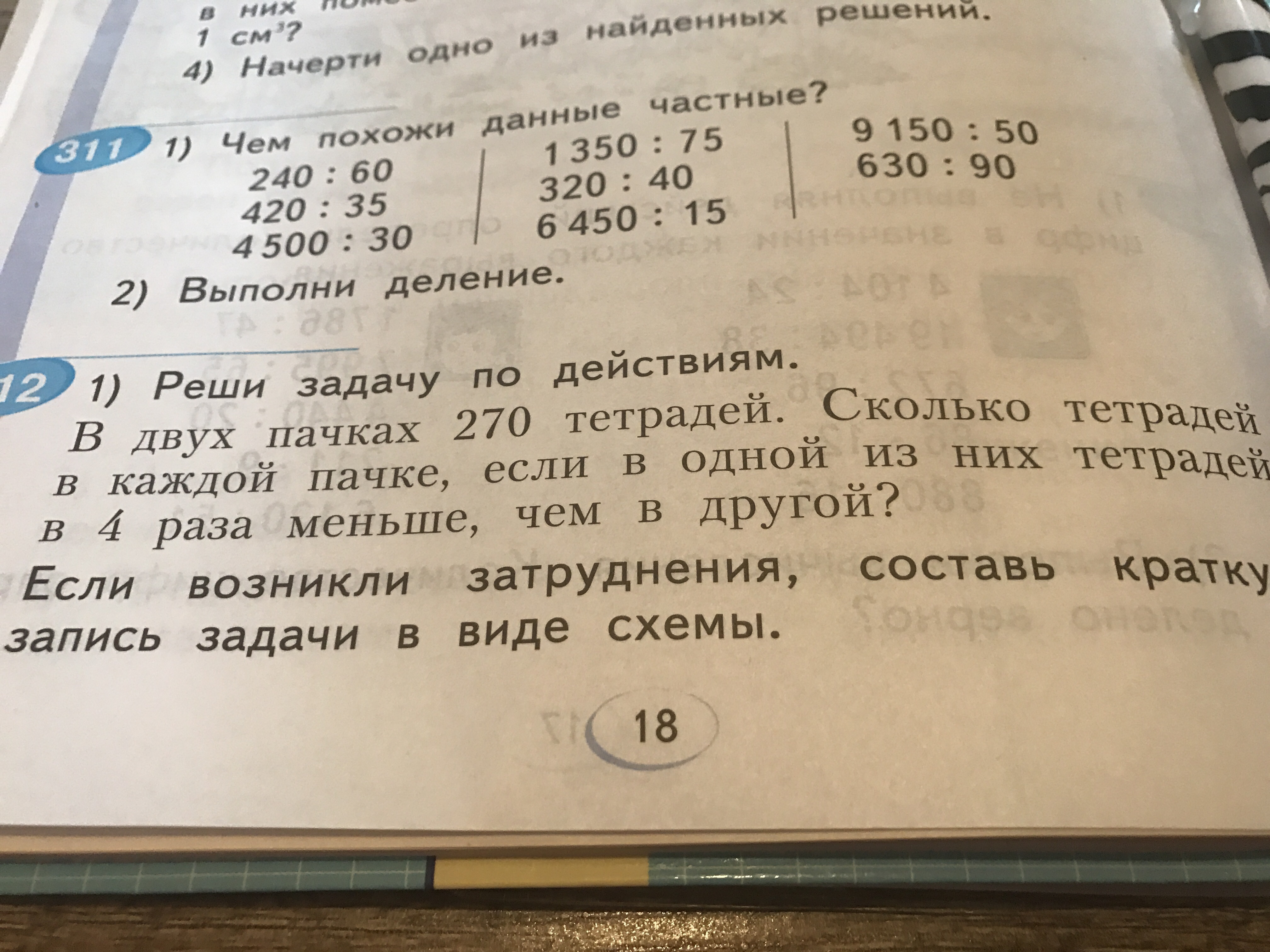 Ответ: в одной пачке 54 тетради, в другой 216 тетрадей