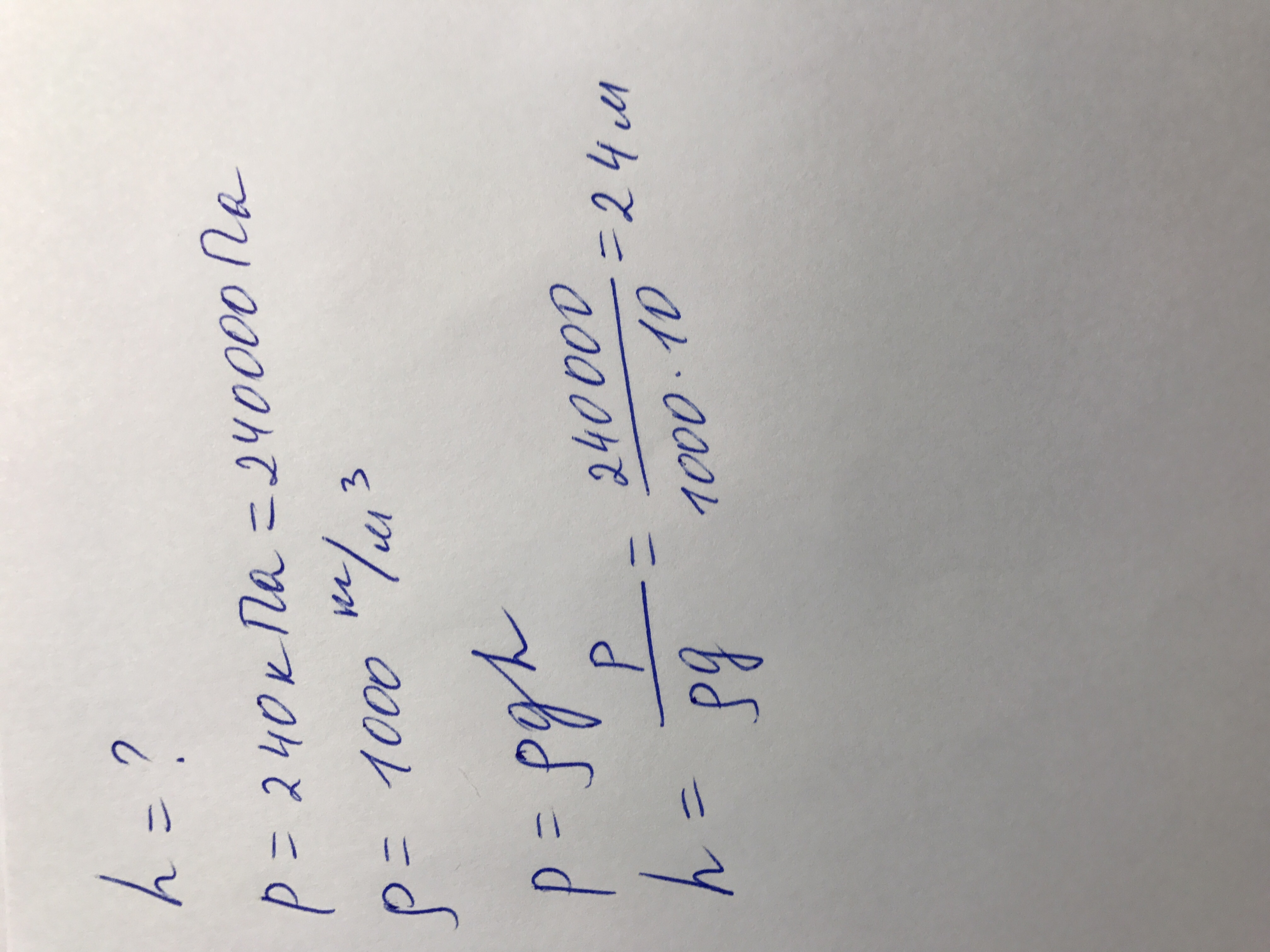 Чему равна высоте высота воды в в водонапорной башне, если давление воды у ее основания 240 кило паскалей
