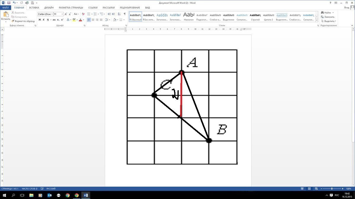 Соединив все точки, можно получить треугольник. т.к 1 клетка - 1 см, соответственно, расстояние от точки А до середины отрезка ВС равняется 2 см.