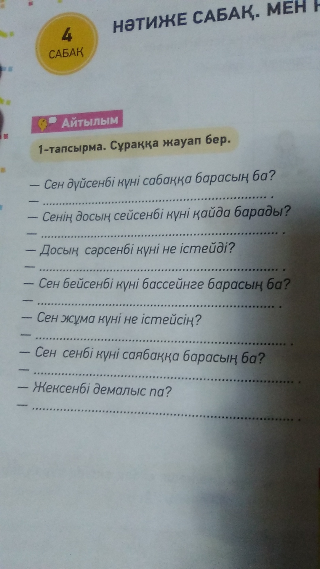 Мен жұма күні сурет үйірмесіне барамын .