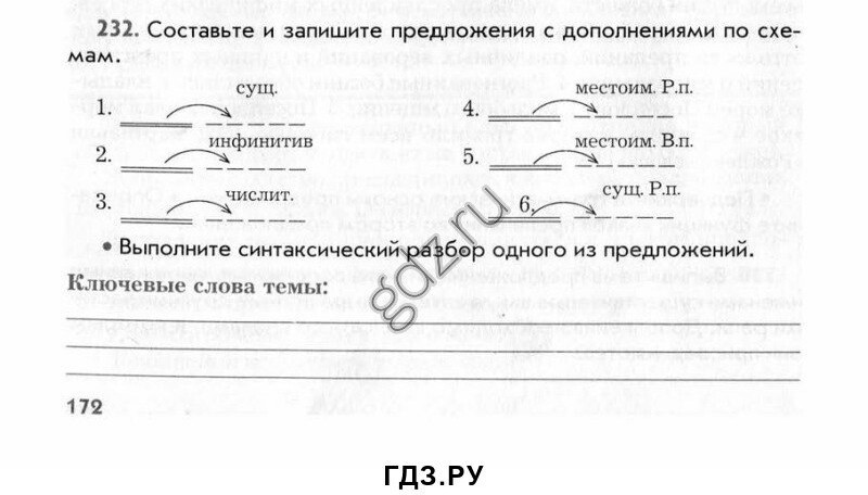составьте и запишите предложения с дополнениями по схемам ,пожалуйста, помогите.