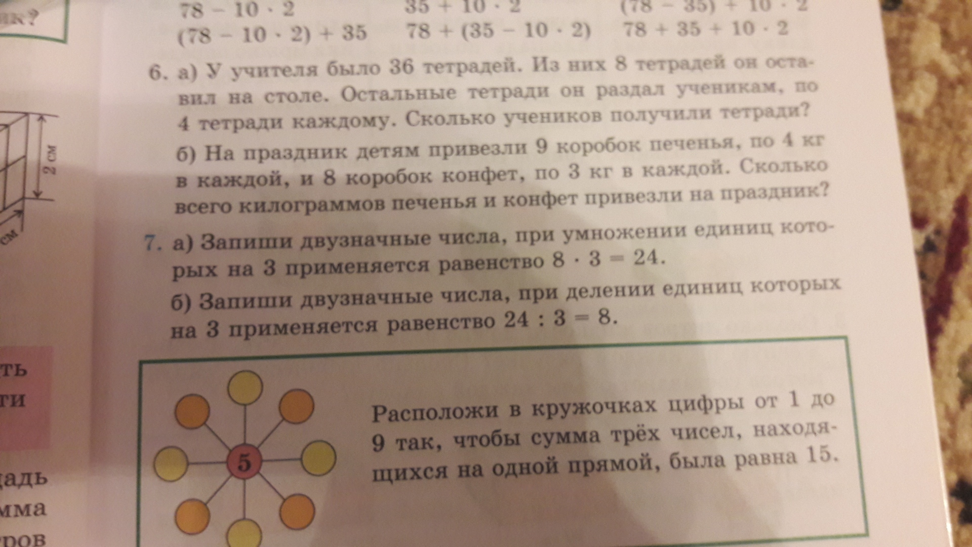 б)12:3=4, 15:3=5....... и т.д
