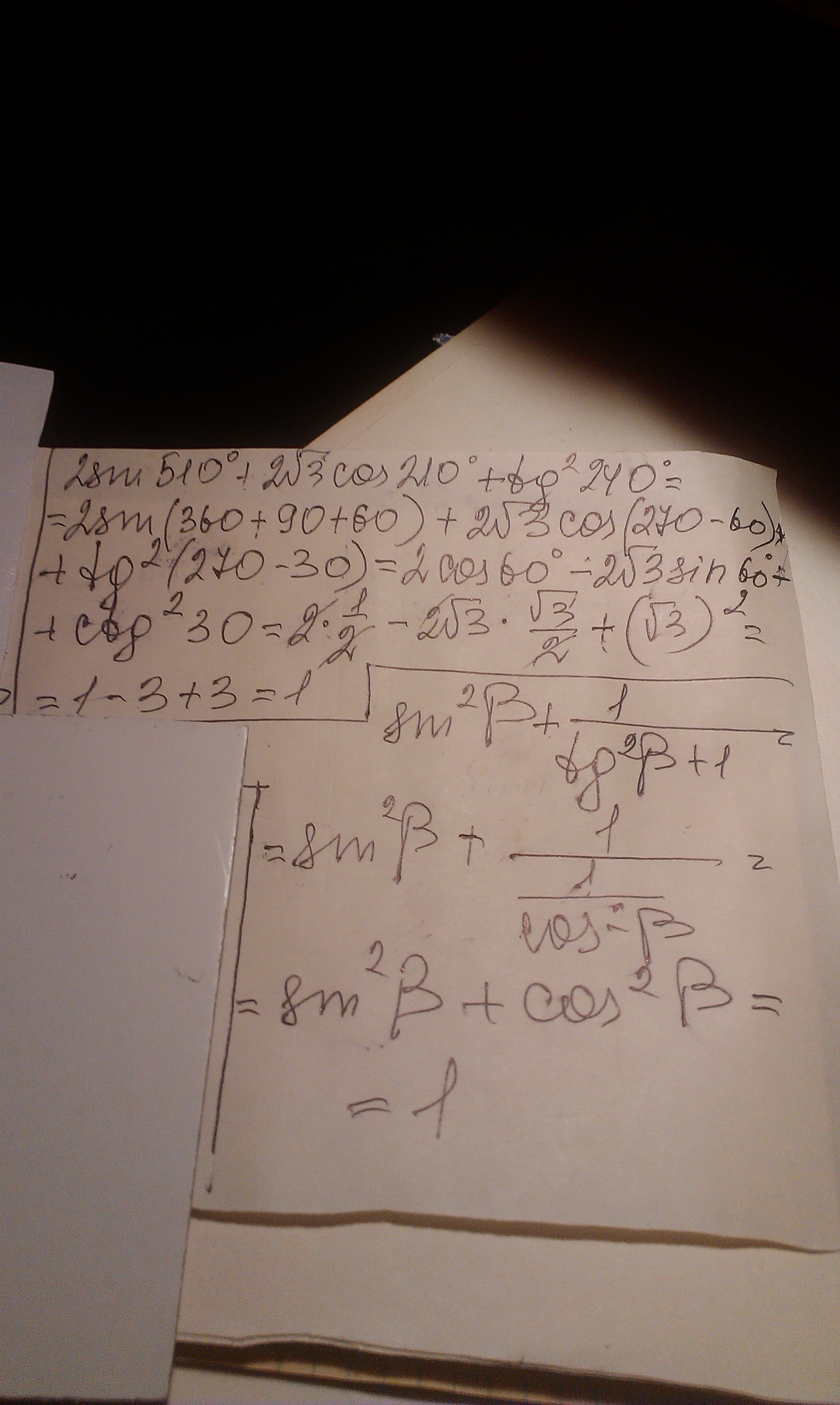 2*sin510+2√3cos210+tg²240=2*sin150+2√3cos150+tg²120=1*1/2+2√3*(-√3/2)+(-√3)²=1-3+3=1