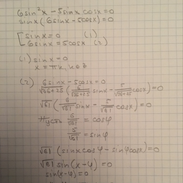 Ответ: pik; arccos(6/корень из 61) + pik, где k принадлежит Z
