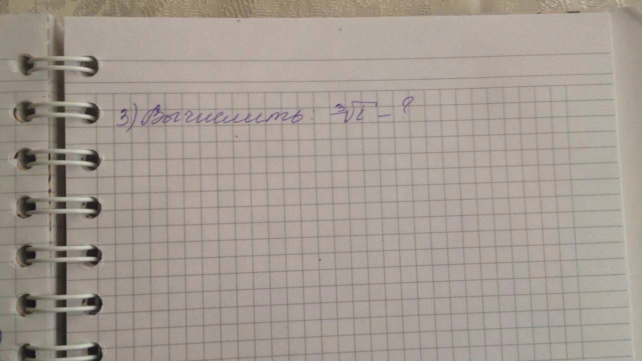 3) Z=(a +bi)=∛i, a∈R, b∈R, (a +bi)^3 =i, a^3 +3(a^2)bi-3ab^2-(b^3)i=i,