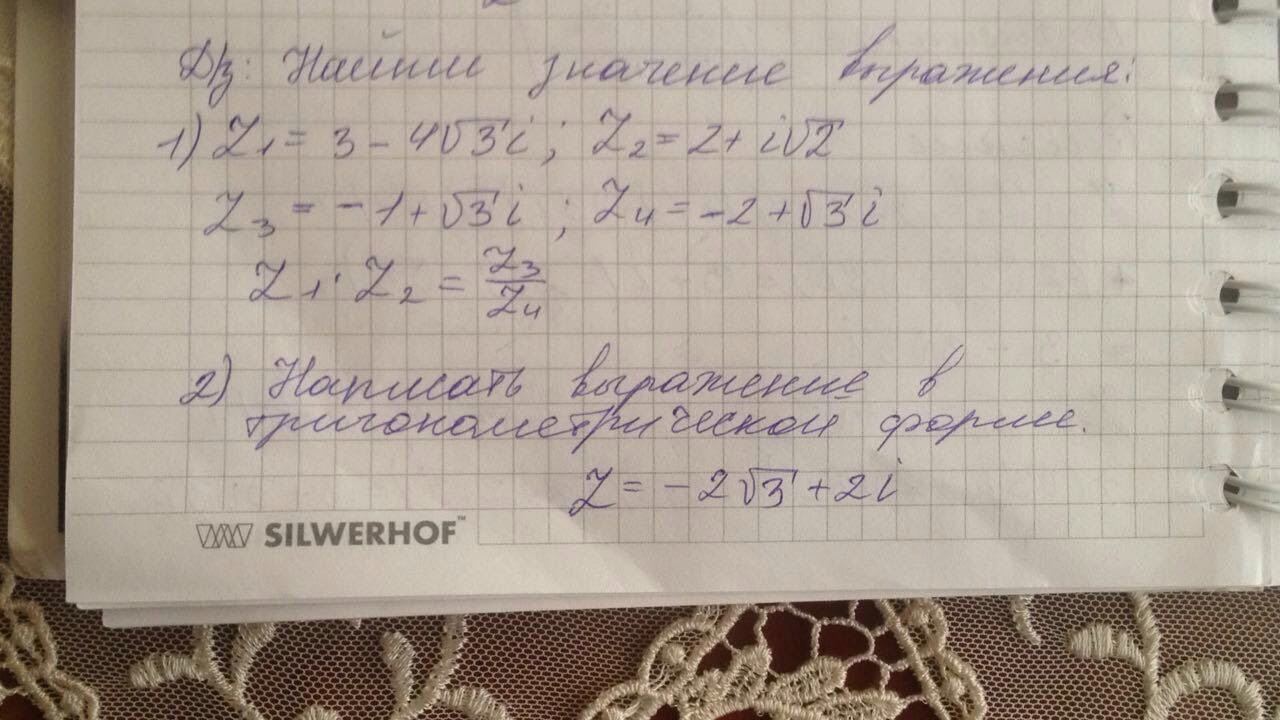 1)Z1*Z2=(3-4i√3)(2+i√2)=6-8i√3+3i√2-4(i^2)√6=6-8i√3+3i√2+4√6=