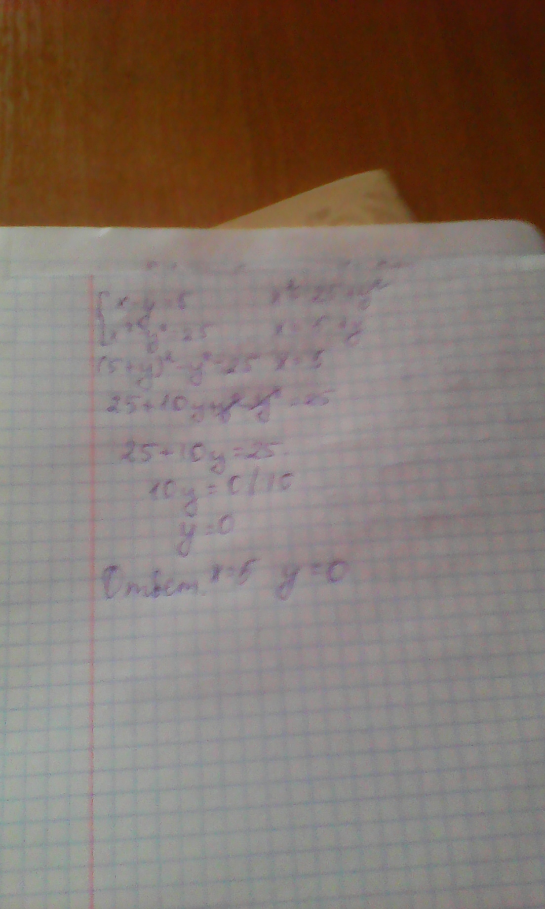 х=5+у, подставим получившееся значение во 2-е уравнение