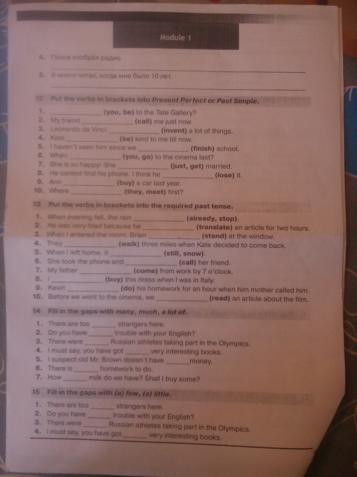 12 1 have you been 2 has called 3 invited 4 has been 5 finished 6 did you go 7 has just got 8 has lost 9 bought 10 have they met