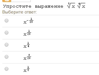 x^(1/5)*x^(1/4) = x^(1/20), второй вариант