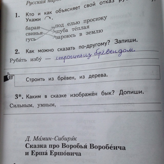Каким в сказке изображён бык?Допиши