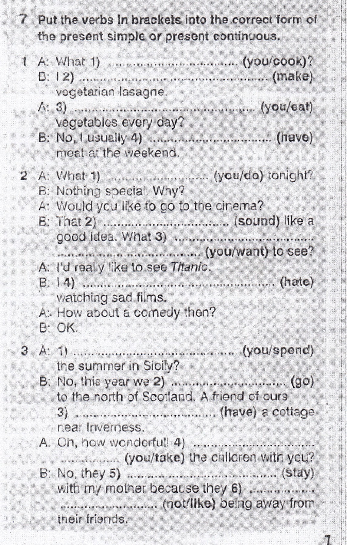 3 1 are you spending 2 are going 3 have 4 are you taking 5 are staying 6 don't like
