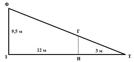 Отсюда ГН = (НТ · ФЗ) : ЗТ = (3 м · 9,5 м) : (ЗН + НТ)=