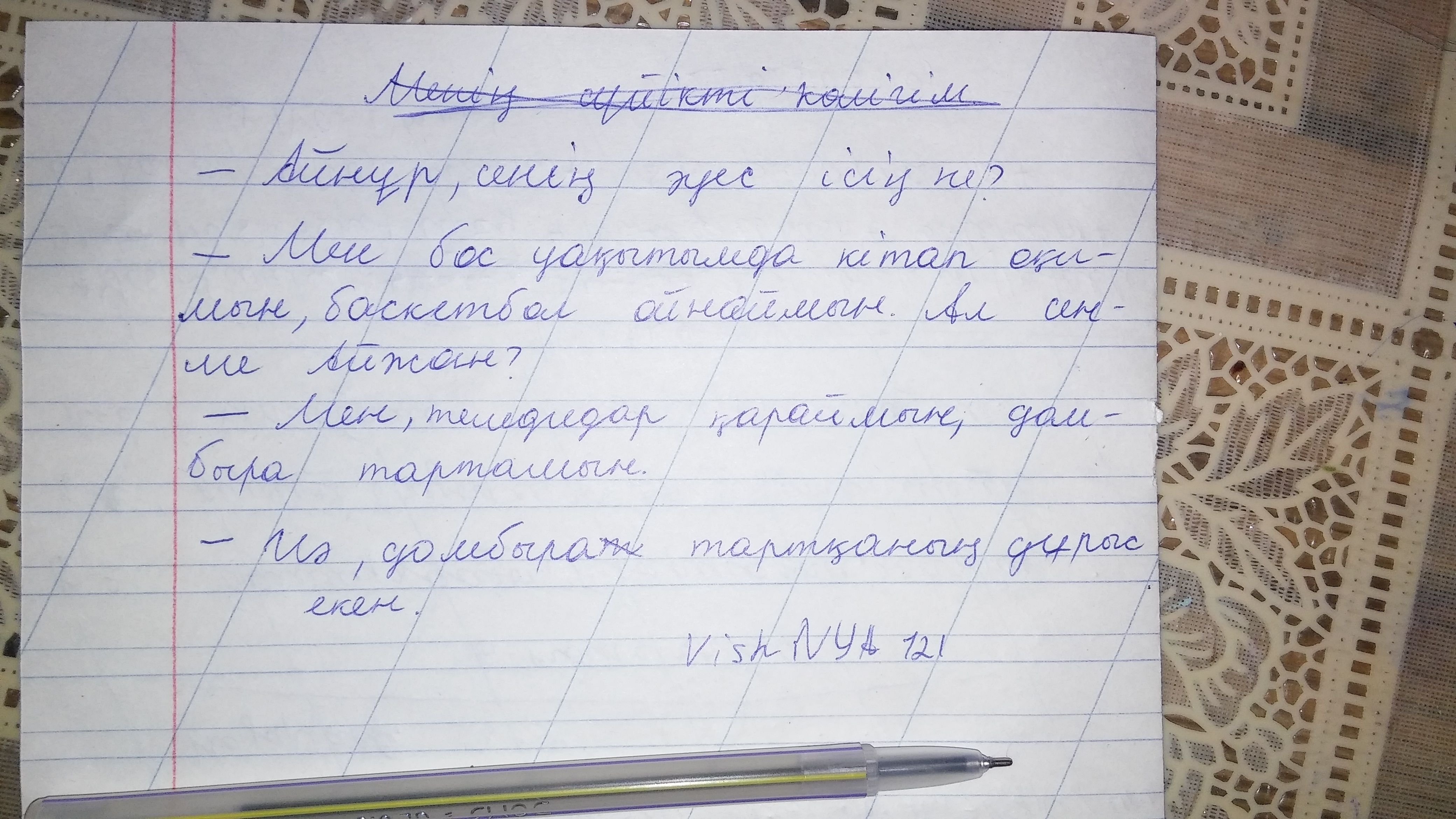Сәлеметсіз бе! "менің әуес ісім" диалог.