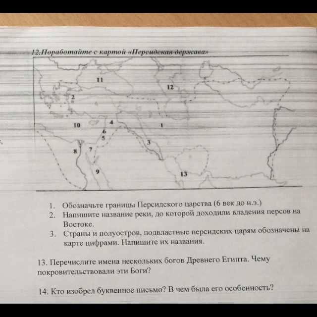 3.1-мидия 2-лидия 3-вавилон 4-сирия 5-палестина 6-финикийя 7-синайский полуостров 8-египет 9-красное море 10-восток средиземного моря 11-чёрное море 12-каспийское море 13-персидский залив