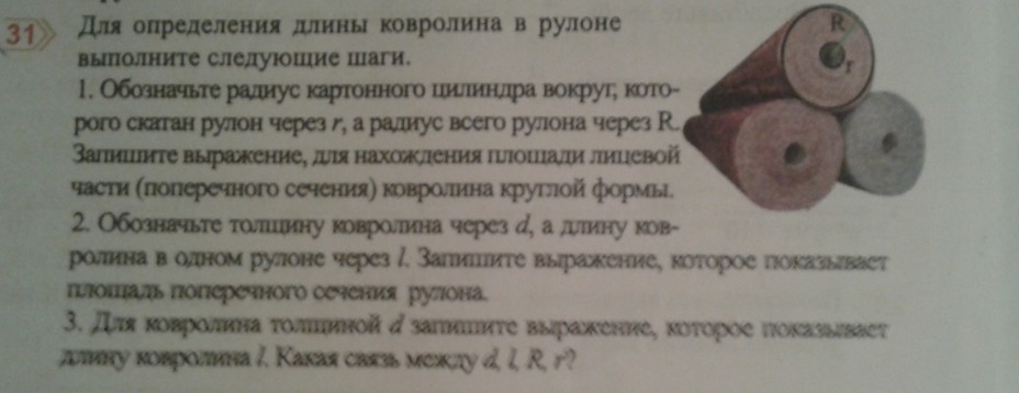 Связь между l, d, R r - в нахождении площади края ковролина. .