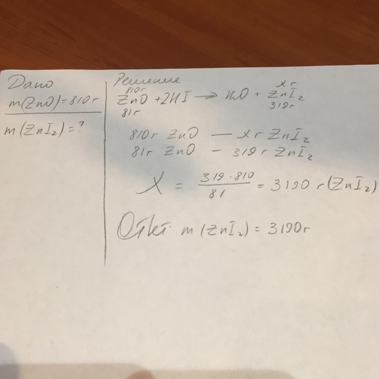 Вычислите массу соли,образовавшейся при взаимодействии 810г оксида цинка с йодированной кислотой.(через дано и решение).50 баллов.