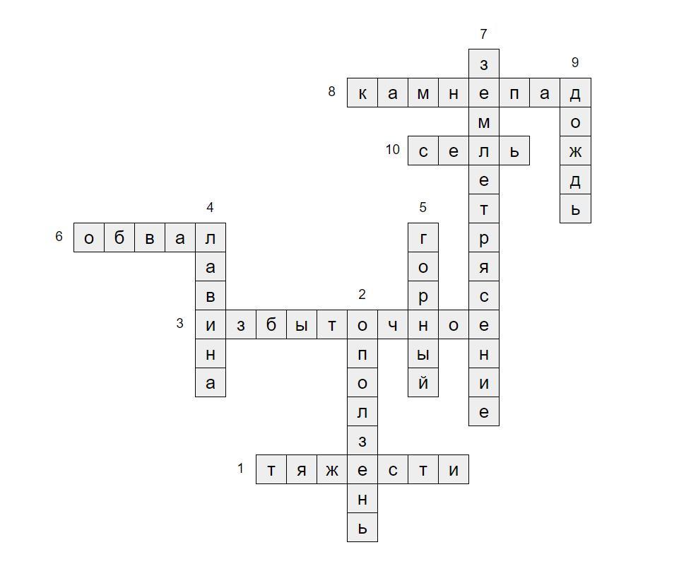 1 Под влиянием какой силы происходят оползни (тяжести).