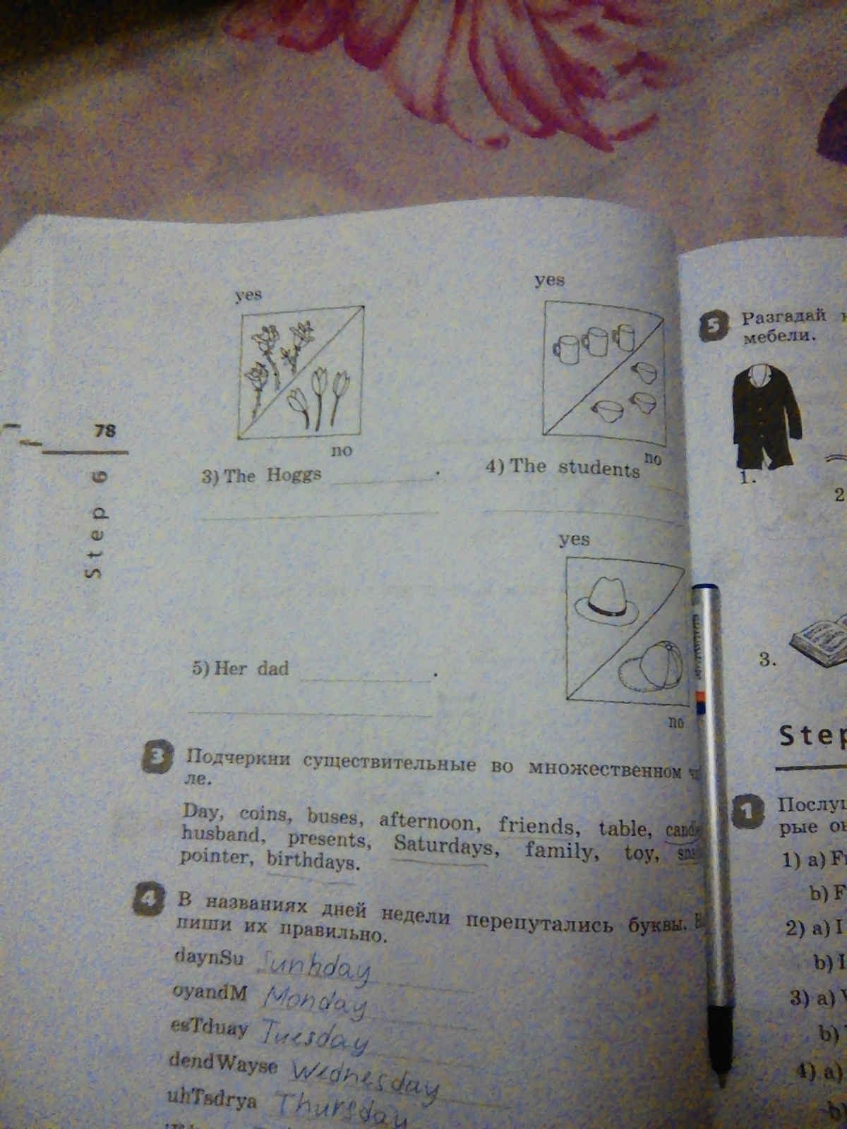 5) her dad has got a hat and he hasn't got a baseball cap