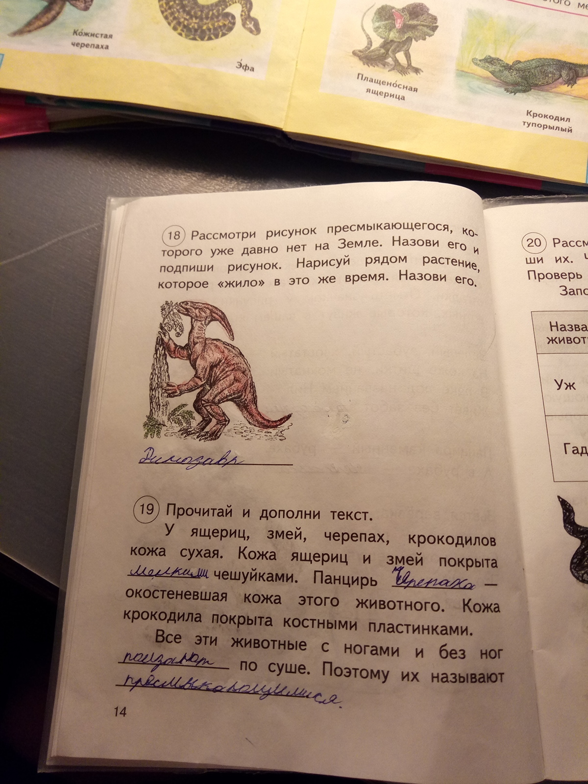 Рассмотри рисунок пресмыкающегося которого уже давно нет на земле назови его и Подпиши рисунок нарисуй рядом растение которые жили в то же время назови его