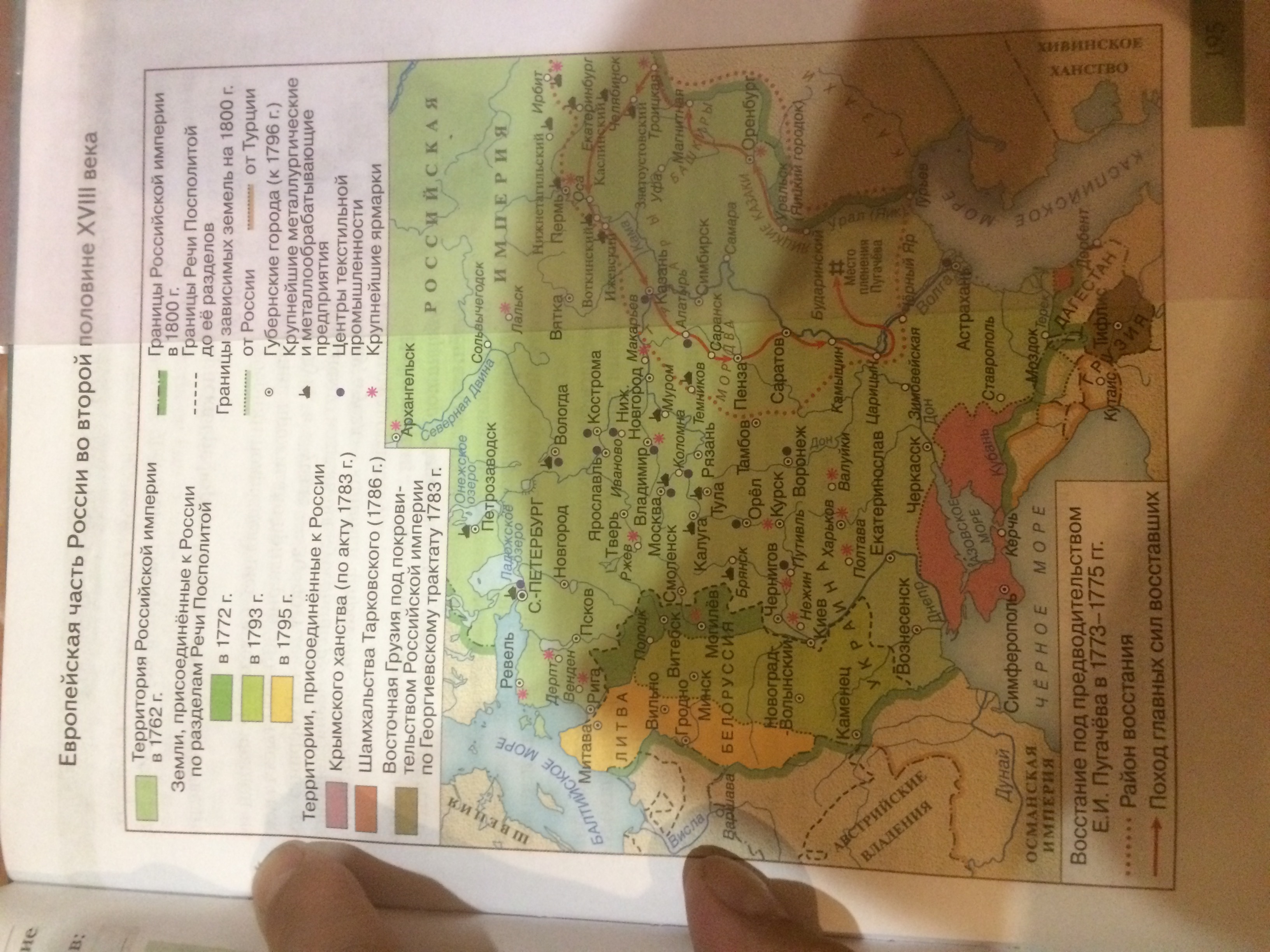 На карте (стр 195) опишите экономическое положение России в царствование Екатерины II.Как оно изменилось по сравнению с первой половиной XVIII века (карта на стр 114)?