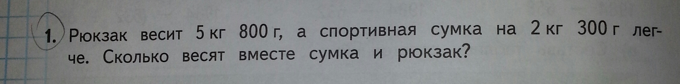 5800 г-2300 г=3500 г - весит спорт. сумка