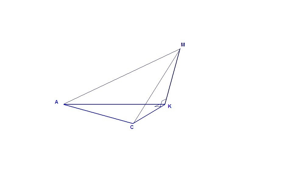 В треугольнике АKС АK перпендикулярно СK. Точка М не принадлежит плоскости AKC и MK перпендикулярно CK.
