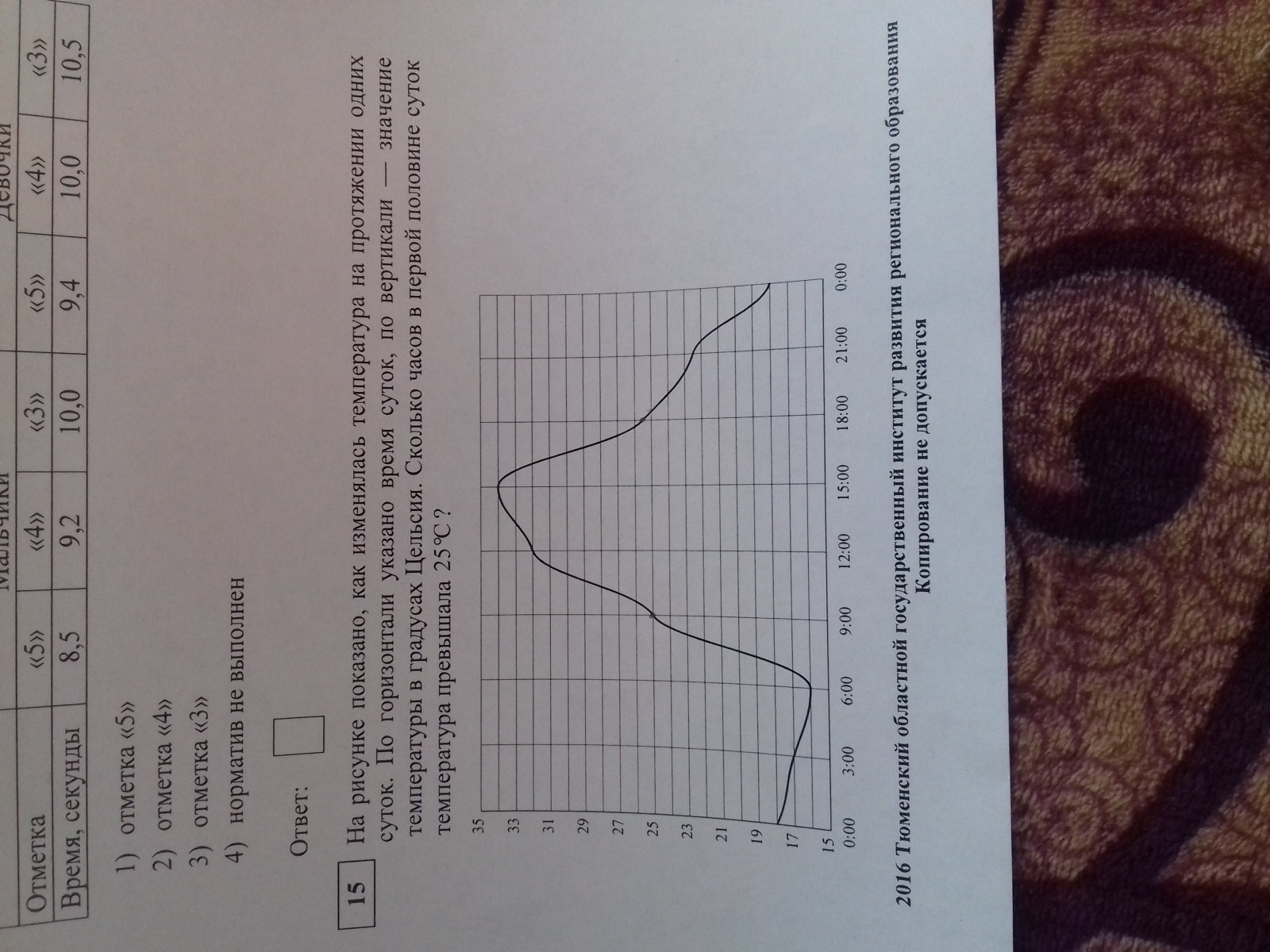 Сколько часов в первой половине суток температура превышала 25 градусов цельсия?(номер 15)