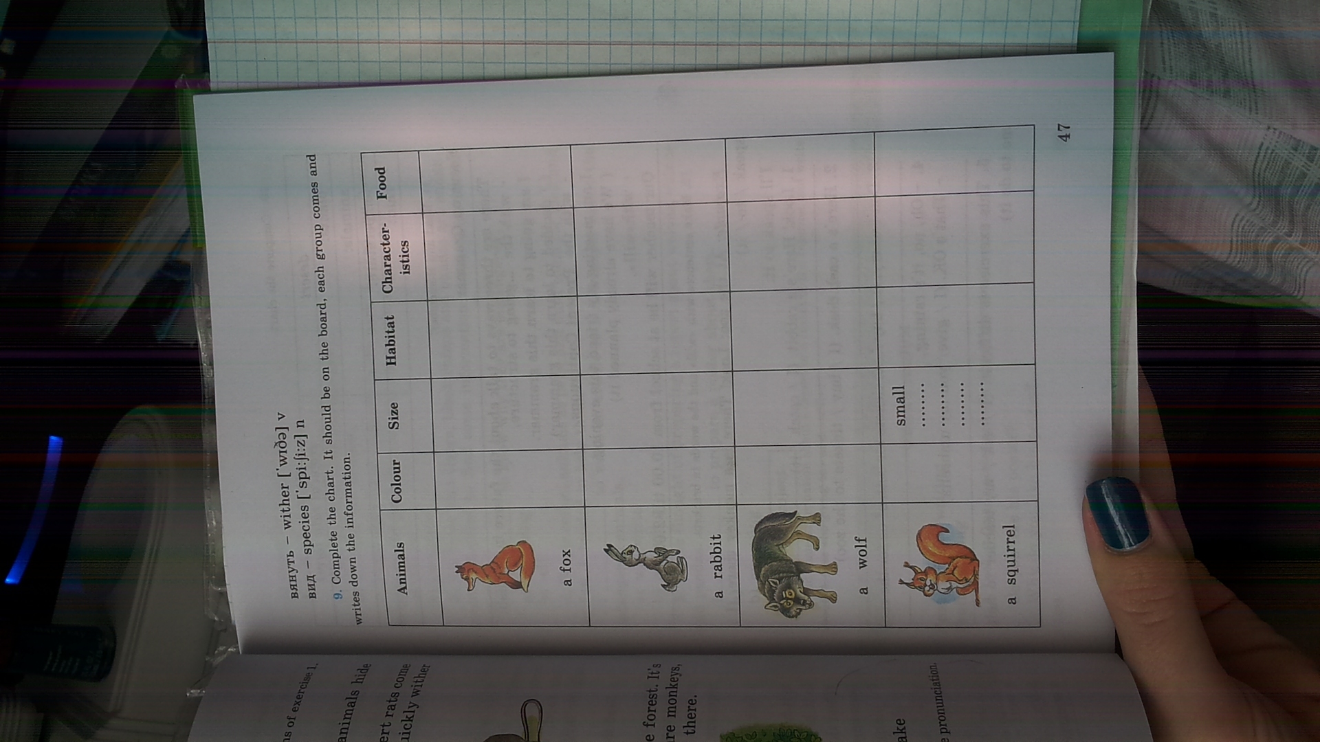там надо написать кто какого цвета , размера ,где живёт и что ест