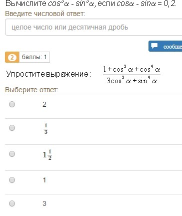 3) 3cos^2 a+sin^4 a=3cos^2 a +(1-cos^2 a)^2=3cos^2 a +1-2cos^2 a+cos^4 a=