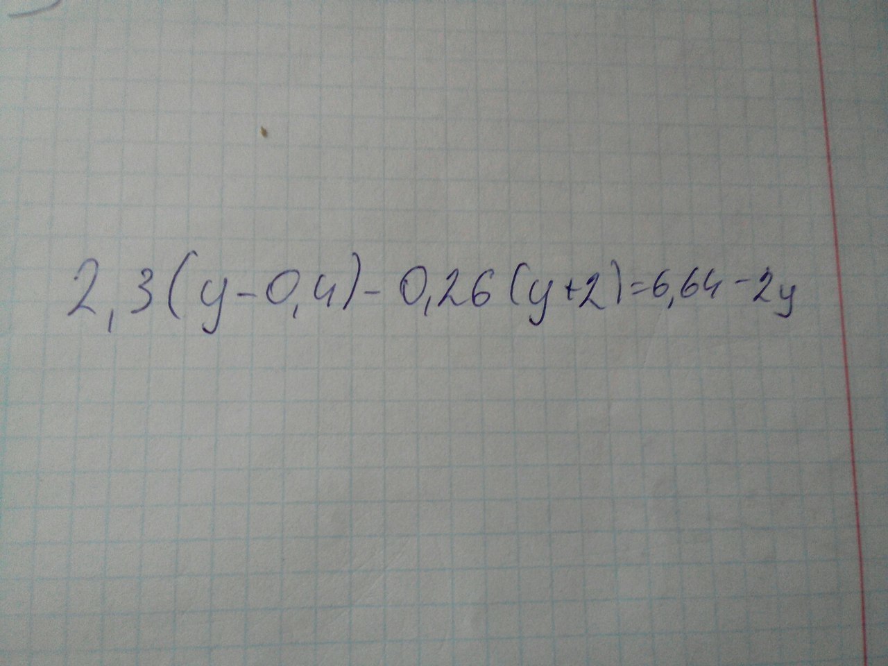2.3(y-0.4)-0.26(y+2)=6.64-2y
