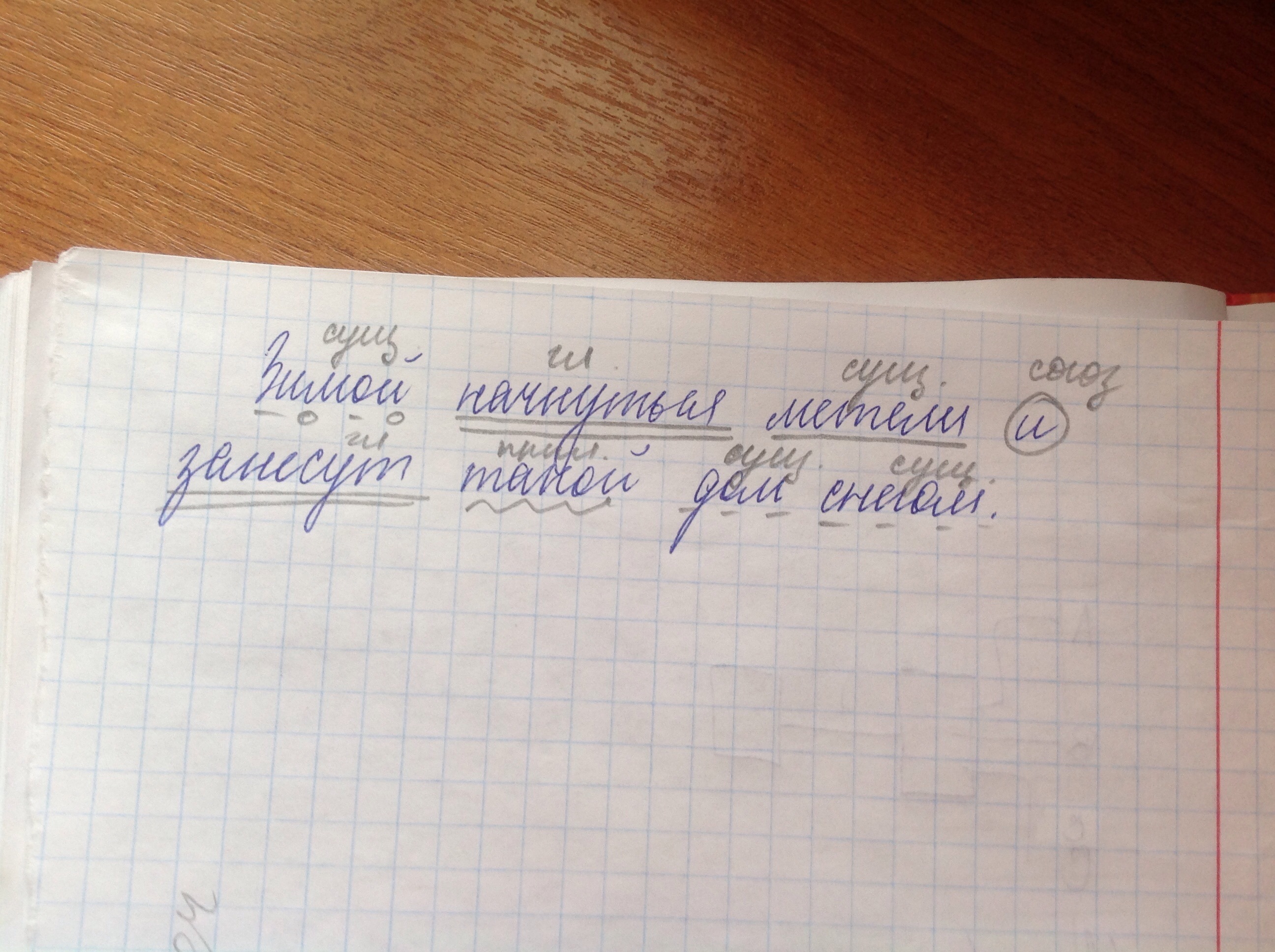 главные члены предложения начнутся,занесут метели,второстепенные зимой,дом,снегом,прил. такой