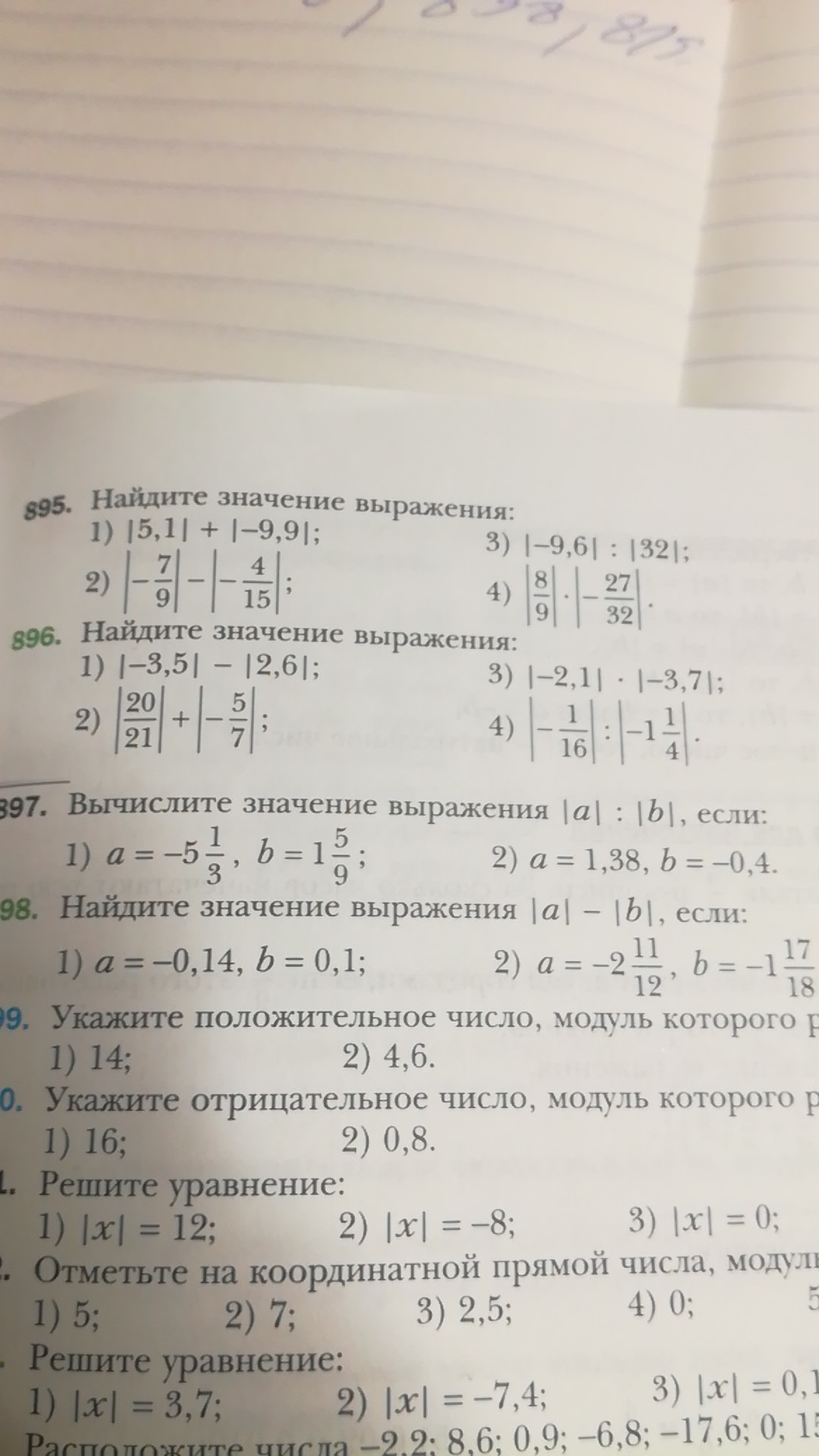 3,5-2,6=0,9 20/21+5/7=(20+15)/21=35/21=5/3 2,1*3,7=7,77 1/16/5/4=1/20,по моему так.отрицательное число под модулем становится положительным