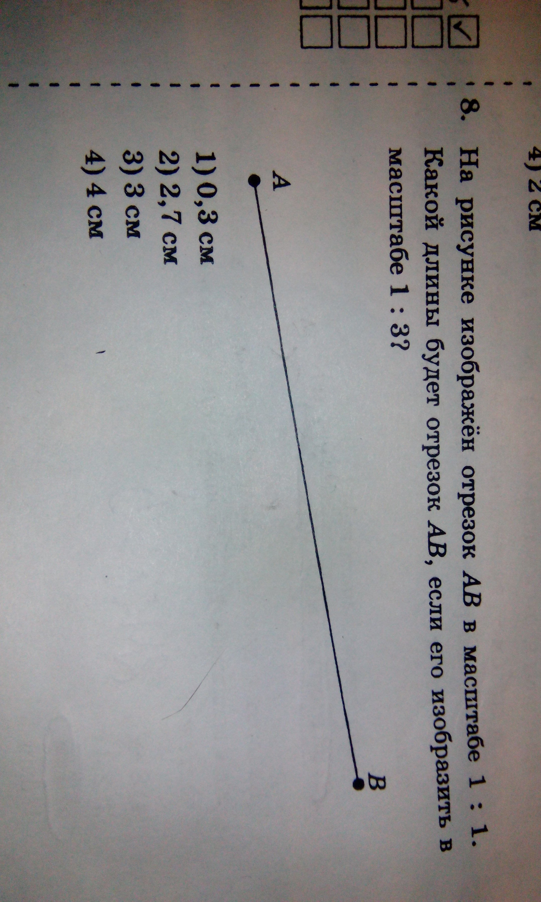 На рисунке изображен отрезок AB в масштабе 1:1.Какой длины будет отрезок AB ,если его изобразить в масштабе 1:3?