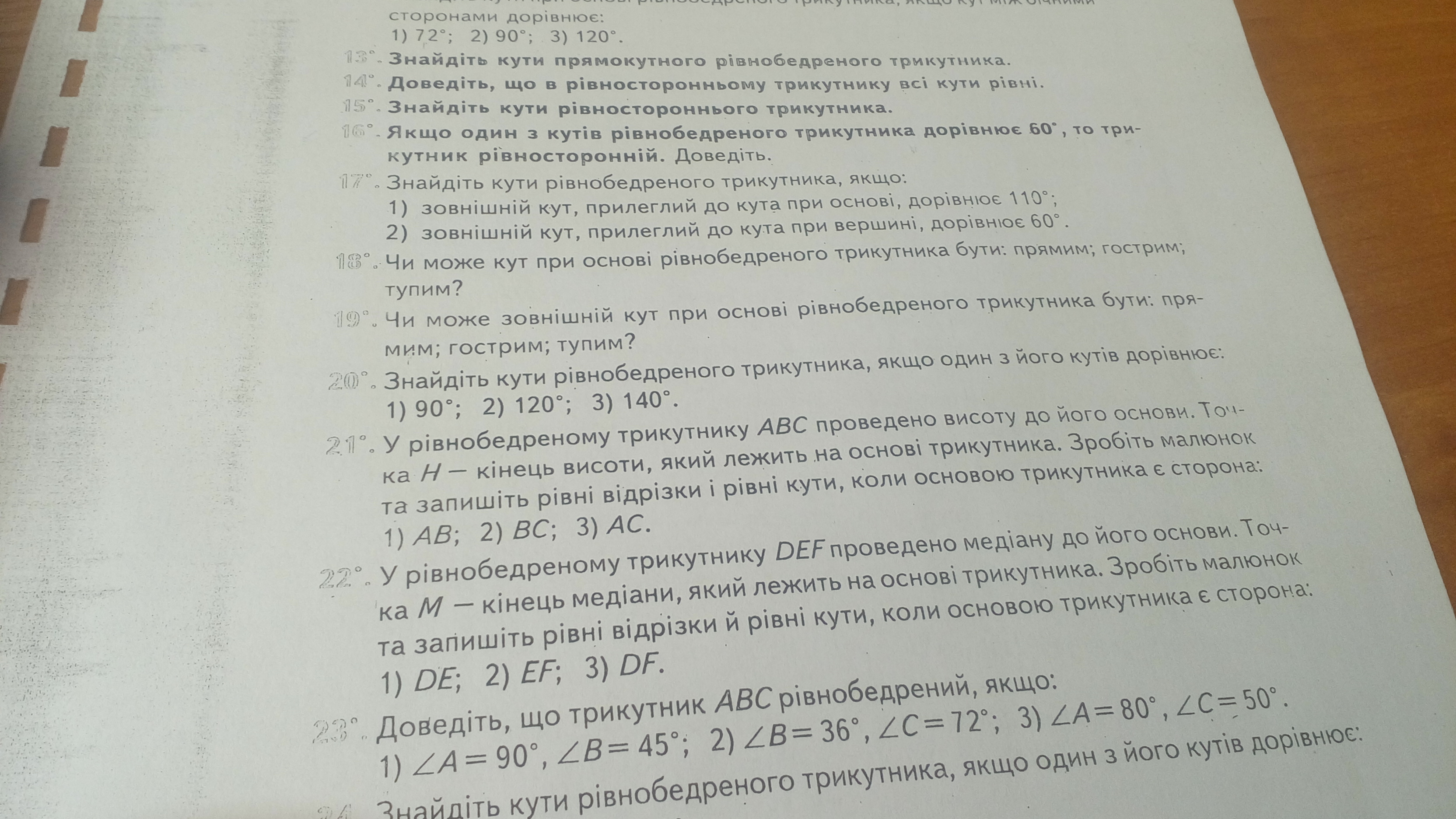 Найдите углы равнобедренного треугольника, если: внешний угол прилегающий к углу при вершине, 60 градусов